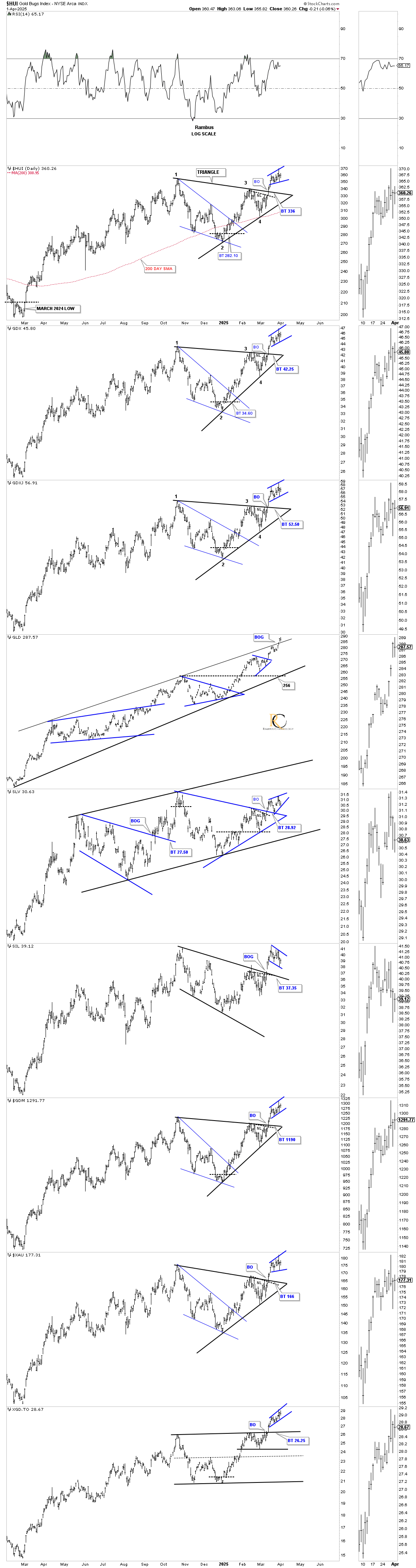 Note how GLD gapped above the top rail of its rising channel/rising wedge with a breakout gap. This is extremely rare with an established channel like this, which could be suggesting a bigger move is coming.